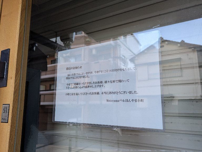 12/28(日)をもって本山の「Motoyamaバル ほんやま小町」が閉店しました【···